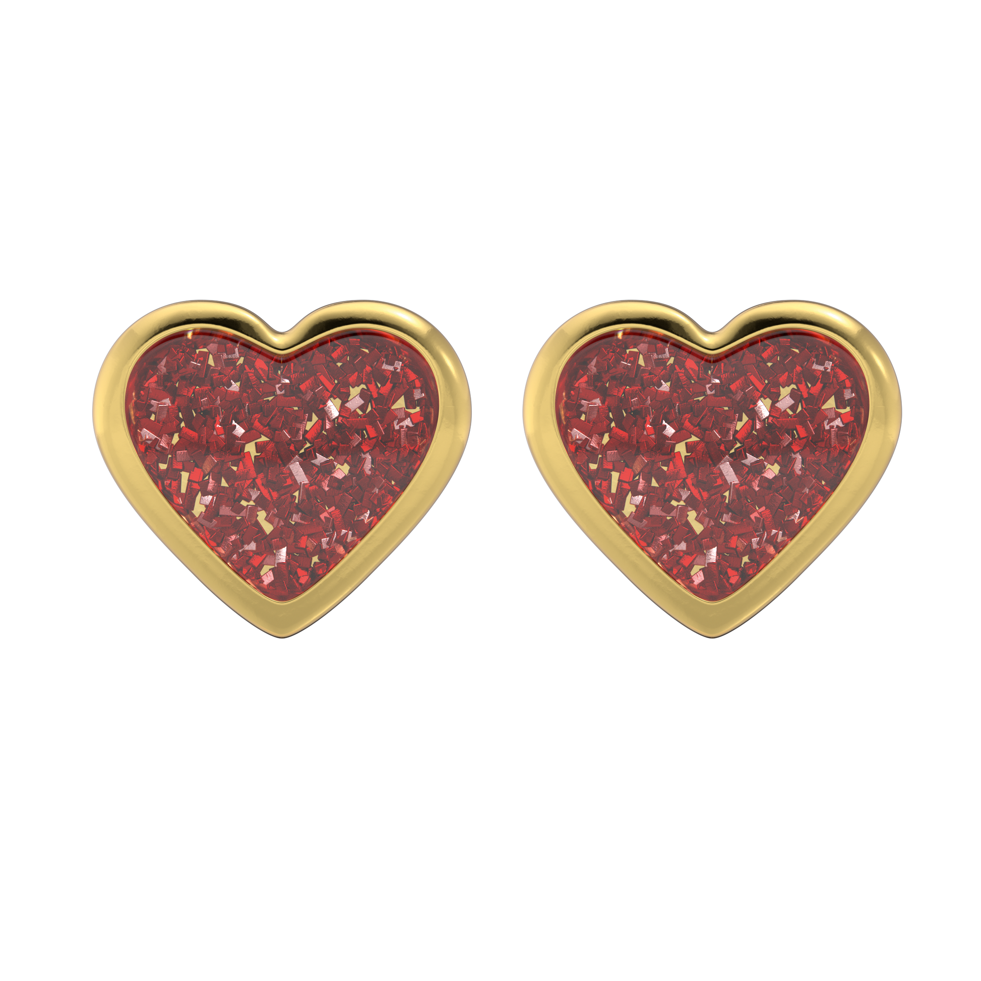 Simli, Kırmızı Kalp, Altın Kaplama, 6 mm